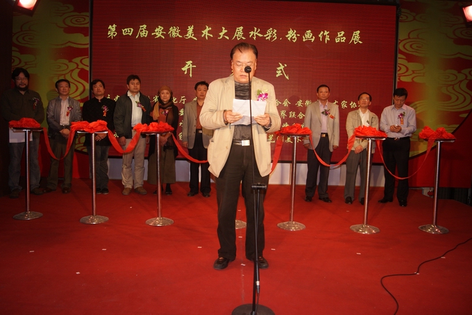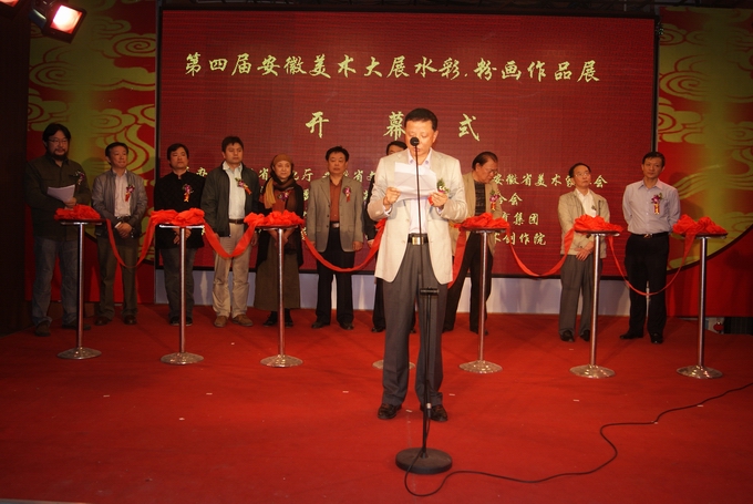 安徽省青年美術(shù)家協(xié)會(huì)主席、安徽省美術(shù)家協(xié)會(huì)水彩藝委會(huì)主任丁寺鐘致開幕詞 蕪湖市文聯(lián)主席夏光發(fā)發(fā)言 安徽省美術(shù)家協(xié)會(huì)主席張松發(fā)表這次展覽的重要講話 夏云興董事長和各界領(lǐng)導(dǎo)為此次展覽剪彩 夏云興董事長與安徽省美術(shù)家協(xié)會(huì)主席張松在展覽大廳興致勃勃地觀看展覽并合影留念